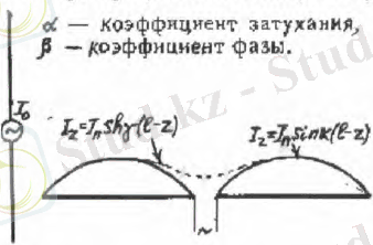 мұндағы: -вибратордың толқындық кедергісі; l-вибратор иілісінің ұзындығы; α-бәсеңдеу коэффициенті; β-вибратордағы фаза коэффициенті.