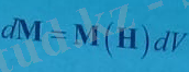 Затты сыртқы магнит өрісіне орналастырған кезде оның dV көлемінің магниттік моменті магнит өрісі кернеулігіне байланысты