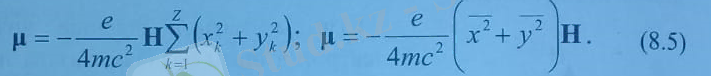 Бұл жердегі электронның атомның центрінен орташа квадраттық ауытқуы. Егер атомдағы электрондар сфералық симметриялы орналасқан болса, бұндағы а элктронның атом центрінен орташа квадраттық ауытқуы. Сонда (8. 5) бойынша атомның магниттік моменті