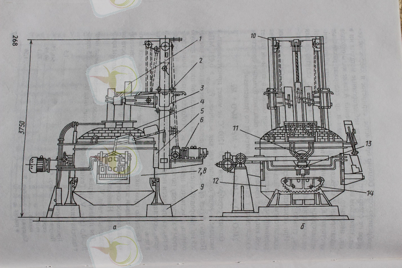 Сурет 1. Құрамында күмісі бар кенді балқытуға арналған ДС-0, 5 пешінің көлденең кесіндісі.