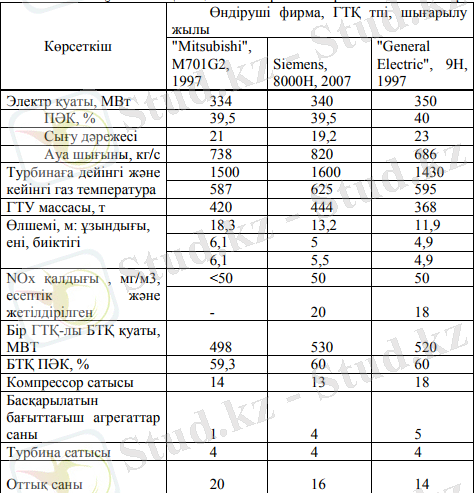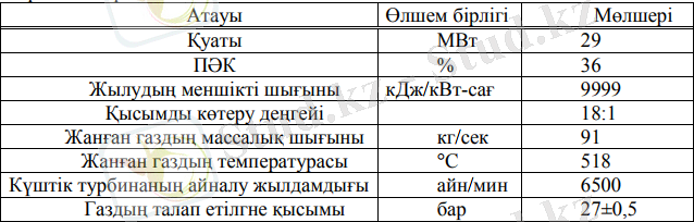 1 - Кесте . Қуатты ГТҚ-ның жалпы көрсеткіштері мен сипаттамалары.