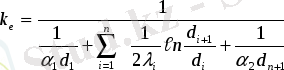 мұнда е - жылуды алып берудің сызықтық коэффициенті, Вт/ (м. К), бірнеше қабаттардан тұратын цилиндрлік қабырға үшін былай есептеледі: