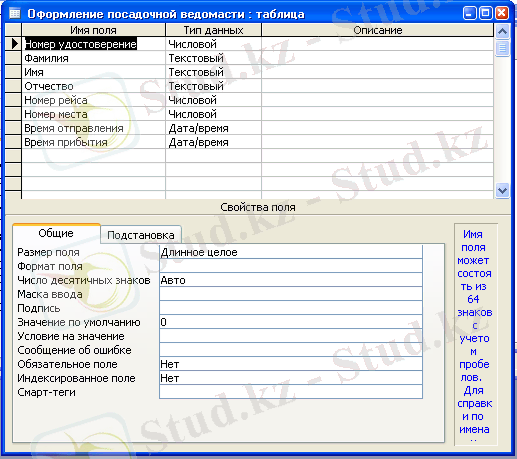 Тақырыбы: Access программасында“ Аэропорт кассасы” деректер қорын құру.
