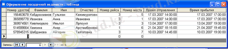Жолаушылардың билеттерін толтыру (Оформление посадочной ведомости) кестесін толтыру керек
