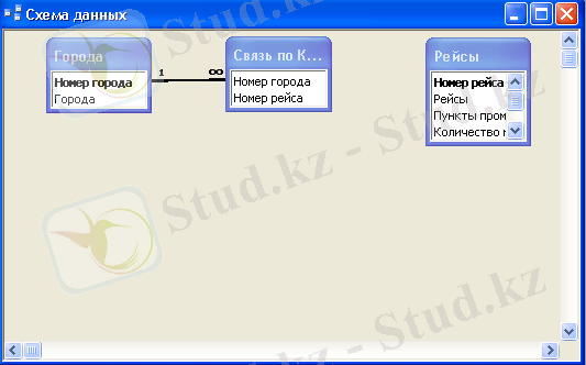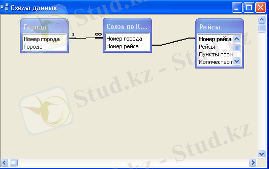 1- сурет. Рейстер мен қалалар кестелердің арасындағы байланыстың түрі.