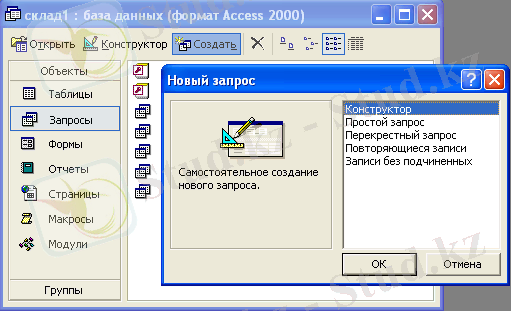 Запросы -> Создать -> Конструктор командаларын орындаймыз (21-сурет) .