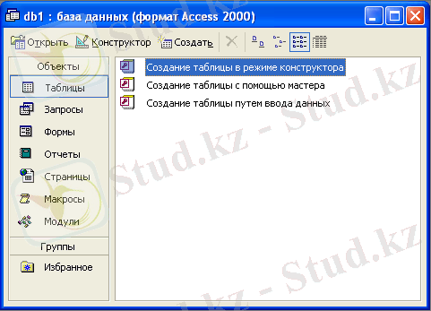 Таблицы ->Создать -> Конструктор (4- сурет) .