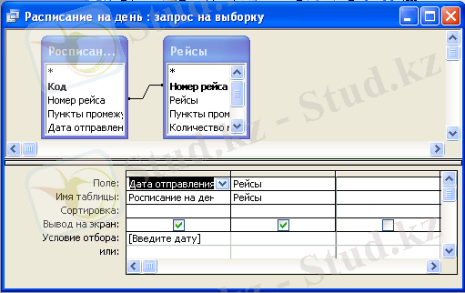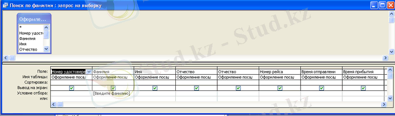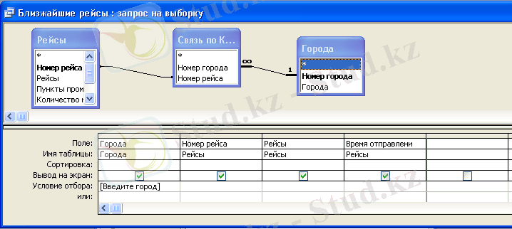 Бірақ-та Условие отбора жолына [Введите город] деген шартты жазамыз. Осы сауал осылай орындалады. (24-сурет)