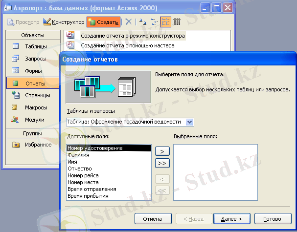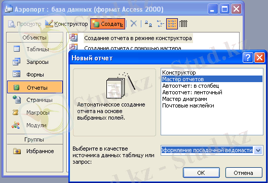 Отчеты -> Создать -> Мастер отчетов (34-сурет) орындағаннан
