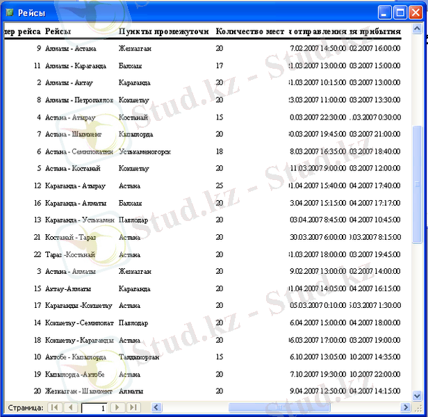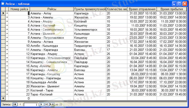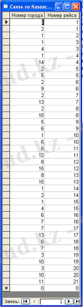 Қалалар мен рейстер (Связь по Казахстану) арасында байланыс орнату үшін мынадай кесте жасау керек.
