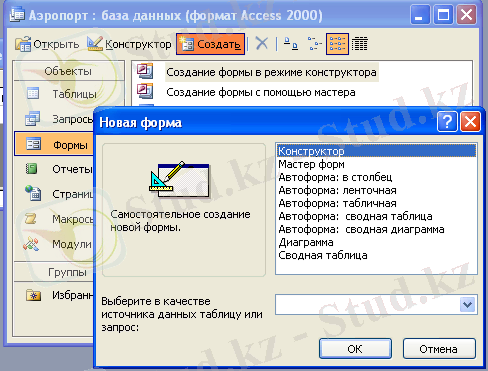 Формы -> Создать -> Мастер форм (40-сурет) орындағаннан