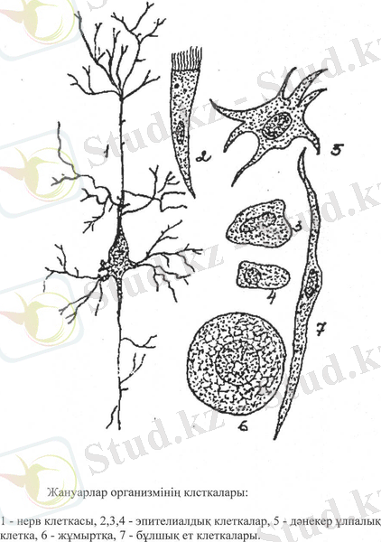 Жануарлар клеткалары жұлдыз тәрізді (нерв клеткасы), цилиндр, куб тәрізді(эпителий клеткалары), сопақша (эритоциттер), тармақталған (мезенхиманың клеткалары), жұмыр (жұмыртқа клеткасы) т. т. болады