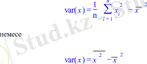 n байқаудан тұратын таңдама үшiн таңдамалы дисперсия таңдамадағы орташа квадраттық ауытқу ретiнде анықталады: