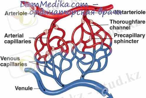 Микроциркуляторлық арна жүрек-қантамыр жүйесінде орталық болып табылады. Ол қанның негізгі функциясы - транскапиллярлы алмасумен қамтамасыз етеді. Микроциркуляторлық звено ұсақ артериялардан, артериолалардан, капиллярлардан, венуллалардан, ұсақ веналардан тұрады. . Транскапиллярлы алмасу капиллярларда жүреді. Оның жүруі екі жақты өткізгіш қасиетіне ие, капиллярлардың ерекше құрылысына байланысты. Капиллялардың өткізгіштігі- бұл белсенді процесс, ол организм жасушаларының қалыпты тіршілігін оптималды ортамен қамтамасыз етеді. Қан микроциркуляторлық арнадан венаға түседі. Веналарда қысым төмен болады:ұсақтарында 10-15 мм. с. б. б. , ірілерінде 0 мм. с. б. б. дейін. Қанның венамен жүріп отыруы мына факторлармен қамтамасыз етеді: жүрек жұмысы, венаның клапанды аппараты, қаңқа еттерінің жиырылуы, кеуде клеткасының сіңірілуі.