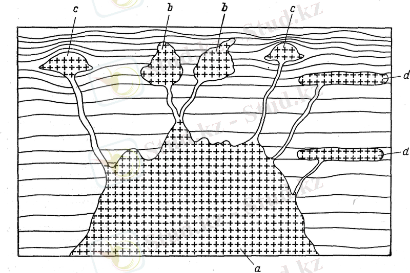 а - батолит; b - шток; с - лакколит; d - желі қабаты.