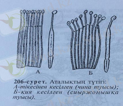 А-гүл шанағы; Б-гүл (жалпы көрінісі және көлденең кесіндісі) ; B -күлте жапырақшалар ; Г-аналық: Д-гүлдің диаграммасы ; Е- гүлдеп жеміс беретін өркен; Ж-жемісі-біріккен жаңғақшасы (тікесінен жасалған кесінді) .