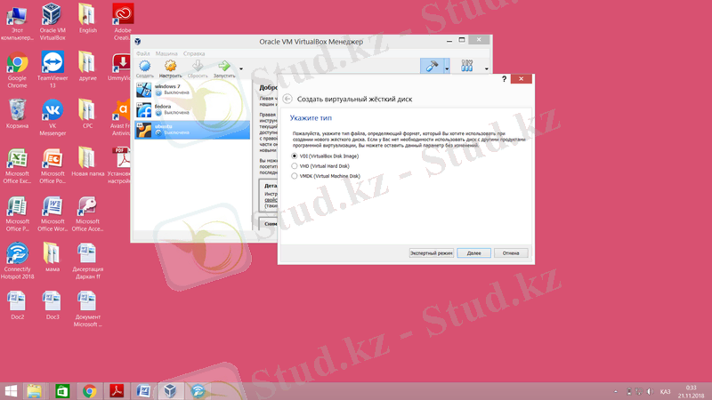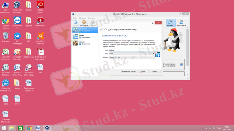 Сурет. 2. 3 Oracle VirtualBox менеджерінде жаңа виртуалды машинаны жасау