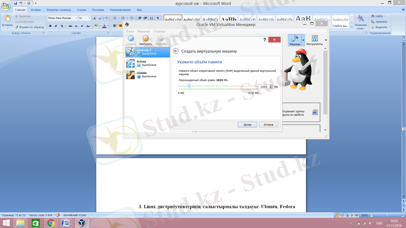 Сурет. 1. 5 RAM виртуалды машина сомасын орнату