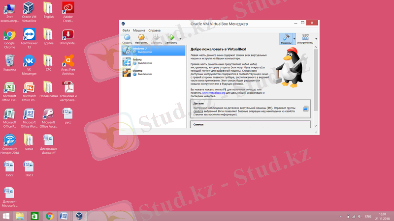 Виртуалды машина құрылады, оның аты Oracle VirtualBox менеджерінің терезесінде қол жетімді виртуалды машиналардың тізімінде пайда болады (сур. 1. 10) .