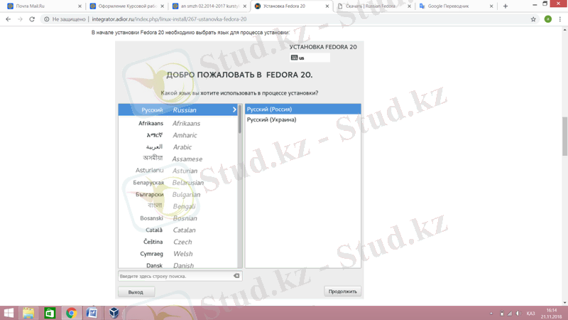 Сурет. 1. 11. Тілді таңдап, Ubuntu-ды орнатуды бастау