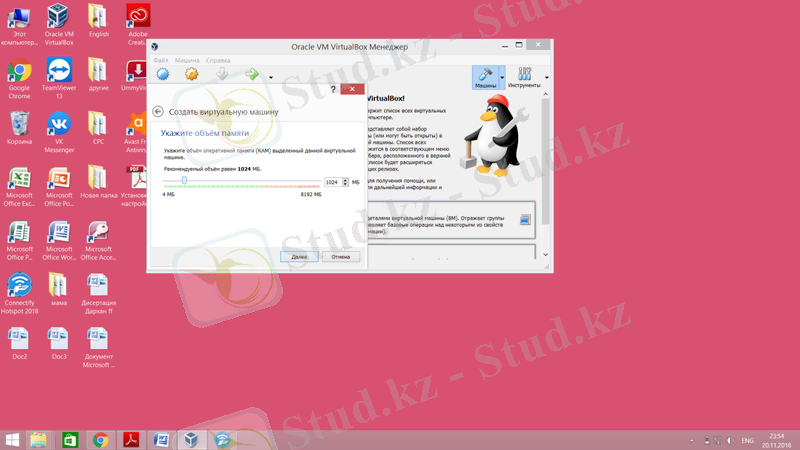 Сурет. 1. 4 Oracle ViқrtualBox менеджерінде жаңа виртуалды машинаны жасау