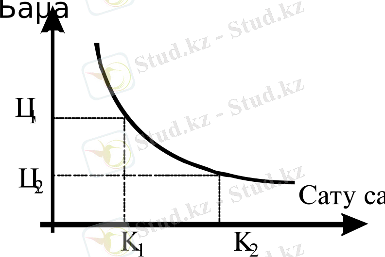 Бұл қисық баға мен сатылатын өнім көлемі арасындағы кері байланысты көрсетеді, яғни, басқадай өзгерістер болмаған жағдайда тауар бағасы өссе, онда осы тауарға деген сұраныс төмендейді. Бұл құбылыс - сұраныс заңы деп аталады.
