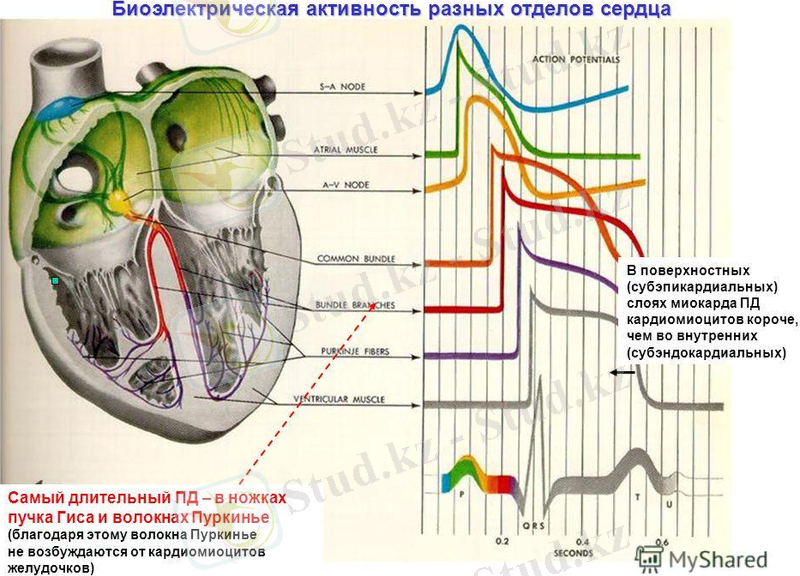 Қозудың миокард қабырғасында таралуы және электр потенциалының тербелуі.