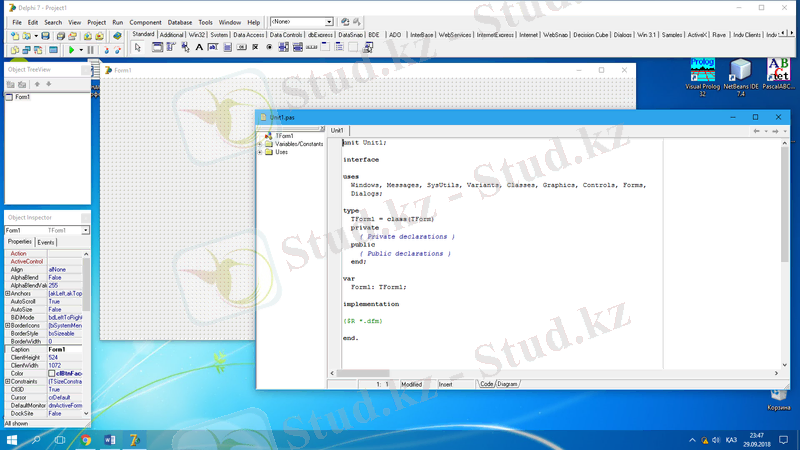 4. Кодтар редакторының терезесі (Unit1. pas)
