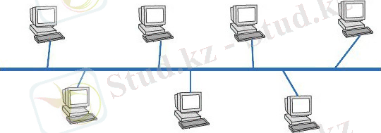 Шиналық топология. Мұнда жұмыс станциялары желі адаптерлері арқылы жалпы шинаға немесе магистральға (кабельге) қосылады. Дәл осындай тәсілмен магистральға басқа да желілік құрылғылар қосыла береді. Желінің жұмыс жасау үрдісінде тасымалданатын ақпарат жөнелтуші станциядан жұмыс станцияларының барлық адаптерлеріне жеткізіледі, бірақ оны тек адресте көрсетілген жұмыс станциясы қабылдайды. (Сурет 1. )