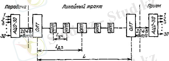 Бұл тарату жүйесі қалалық АТС пен қаласыртындағы АТС арасында ТЖ 30 арнасы арқылы төменгі жиілікті кабельдің қағазд және полиэтиленді изоляциясы бар диаметрі 0, 5, 0, 6 және 0, 7мм байланыстырады. Сонымен қатар ИКМ - 30 цифрлы тарату жүйесі үшін арна үзіліссіз құрылғы ретінде қолданылады. Жүйе бір кабельдік және екі кабельдік болып құрыла алады. Бір кабельді қолданғанда қарама - қарсы бағыттағы мәлімет тарату қайтагенерациялауда бір кабельдің әртүрлі сыныарларына, ал екі кабельдік әртүрлі кабельдер түрінің сыңарлары қосылады. Бірінші жағдайда өтпелі өшудің көлеміне байланысты сыңарлары таңдалады 2 кабель. Жүйеде цифрлы сызықты тракт барлық кабель сыңарларында қалыптасуы мүмкін, сол кезде кабельдік сыйымдылық 13 - 14 рет ұлғаяды, ал бір кабельдік жүйеде 10 рет қана, өйткені 1/3 кабель сыйымдылығы қолданылады. Аналогті - цифрлы құрылғыны (таратуда) және цифрлы - аналогты (қабылдауда) құрылған түрленуді 30 телефондық сигнал қабылдағанға структуралық циклдың таралуына байланысты топтық цифрлы ағынның таралу жылдамдығы 2048 кбит/с. Ол кірген және шықан дискретті ақпаратты және АТС құрылғыларымен біріктіруге көмегі тиеді. Сызықты тракт құрылғысы сызықты цифрлы сигналды реттеп қабылдауға арналған. Сонымен қатар қашықтан басқарып қоректендірумен НРП телебарлауға байланыс қызметін құруға негізделген. Байланыс орнату сұлбасы 1. 1 суретте көрсетілген. Телебарлау ИКМ-30 жүйесі аппаратурасын түзетілмейтін қайта генератормен қызмет көрсетілетін станцияға локализация мүмкіндігін туғызады сол жерде кабельдің қиылып қалуы туған және де НРП төменгі қысымы сай келген. Кабельдің қиылып қалған жерлерін анықтау үшін қосымша кабель сыңарлары қолданылады. [3]
