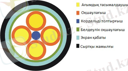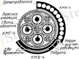 1 - белдеулік оқшаулағыш ; 2 - қорғасын қаптамасы; 3 - екі қару; 4 - сыртқы қақпақ; 5 - брондалған сым. Соңынан А симметриялық жұптарды бояу: 1 - ақ-қызыл; 2 ақ-жасыл; 3-5 - ақ-көк