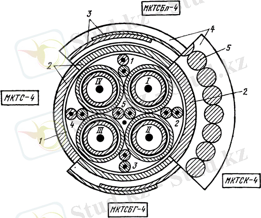 1. 4- сурет. МКТ-4 1, 2/4, 6 кабелінің көлденең қимасы