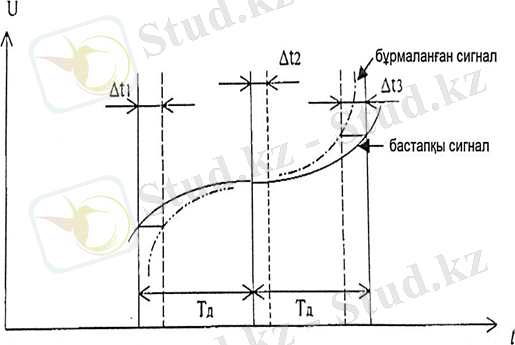 ЦБЖ-ның барлық түрінде дерлік сигналдардың уақыттағы бір қалыпты дискретизациясы қолданылады, яғни қалыпты Т Д дискретизация, ал t i периодта кездейсоқ сипатта болады. Бұл ауытқулар қабылданатын сигналдың пішінінің өзгеруіне әкеледі, ол (2. 1 - суретте) көрсетілген, бұл субъективті түрде қате ретінде қабылданады, мұндай қателерді дискретизация шулары деп атаймыз.