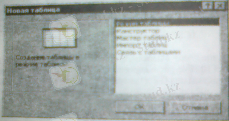 сұхбаттық терезесі көрінеді(3 сурет) . Онда кесте құрудың үш режимі бар: -