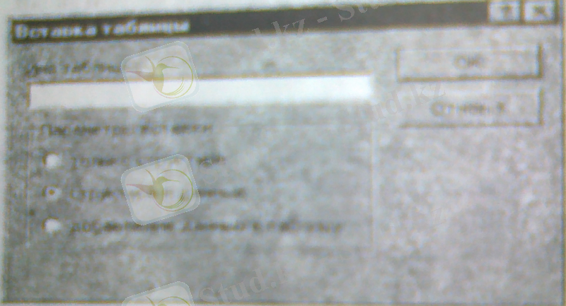 7 сурет. Кесте не құрылымын кірістіру терезесі.