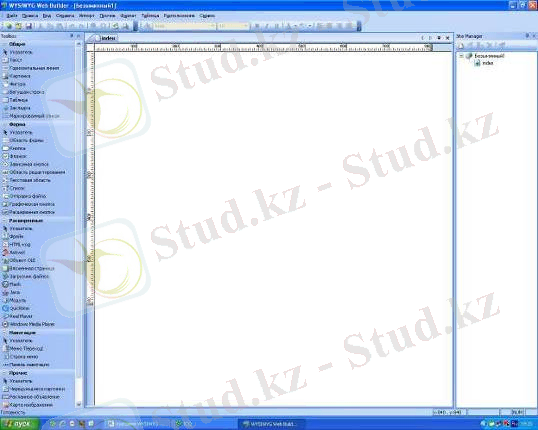 Сурет - 1. Wysiwyg Web Builder бағдарламасының ортасы
