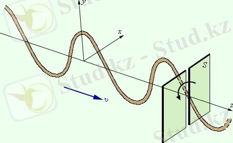 I ~cos 2 ϕ2 сурет. Резина арқанындағы көлденең толқын. Бөлшектер y осі бойымен тербеледі. S саңылауын айналдырса толқын өшеді.