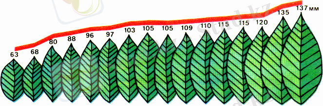 1-сурет. Жапырақтардың өзгермелі нұсқа қатары (жапырақ ұзындығы сан арқылы көрсетілген) [13] .