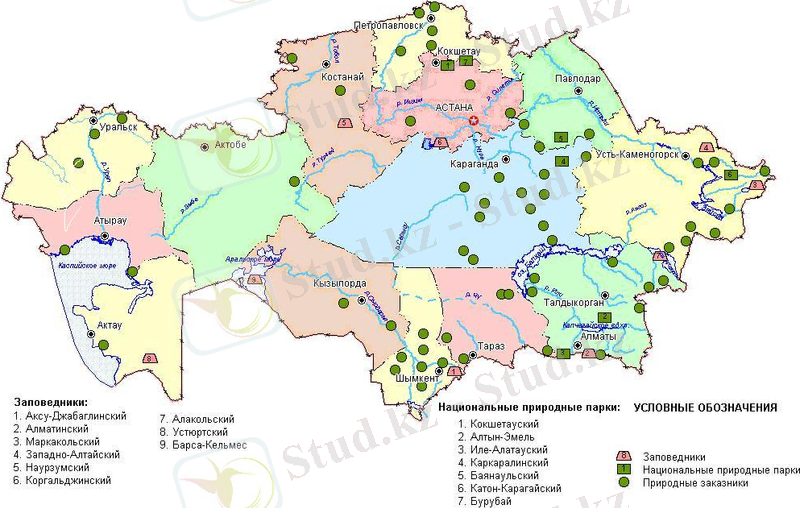 Сурет 1. Қазақстанның ерекше қорғалатын территорияларының картасы