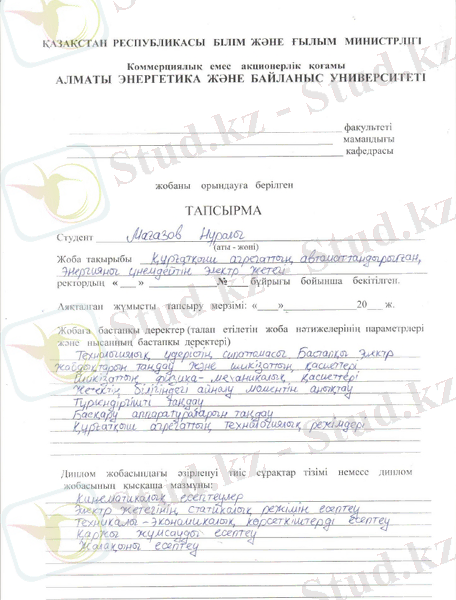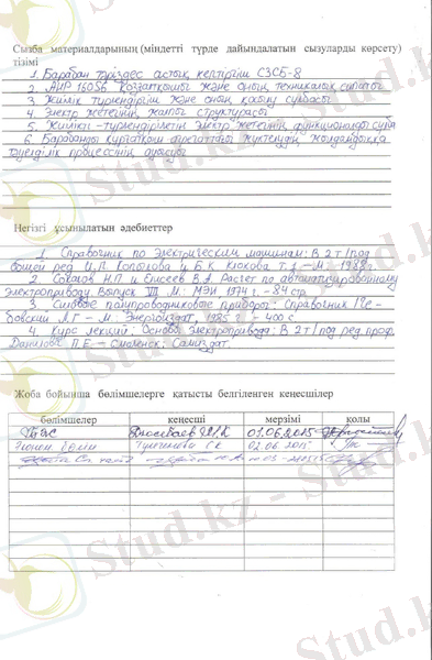 бойынша құрғатқыш агрегаттың электр жетегінің басқару жүйесінің