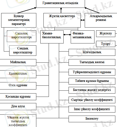 1. 5-сурет - Сусымалы жүктердің ыдыстан гравитациялық шығуына ықпал ететін факторлардың жіктемесі.