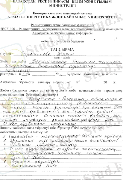 Бұл дипломдық жоба технологиялық байланыс желілерін Қандыағаш-