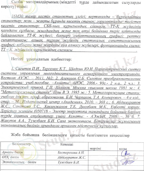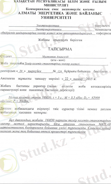16М30 маркалы метал кесетін станоктың электр жетегін MATLAB-та математикалық модельдеу, өтпелі сипаттамалар және қауіпсіздік-экономикалық талдау