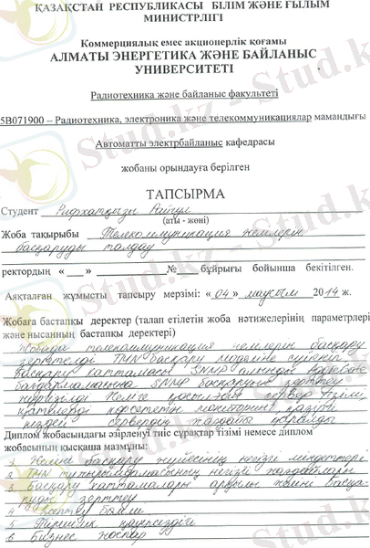 Бұл бітіру жұмысында телекоммуникация желісінде басқаруды тарату