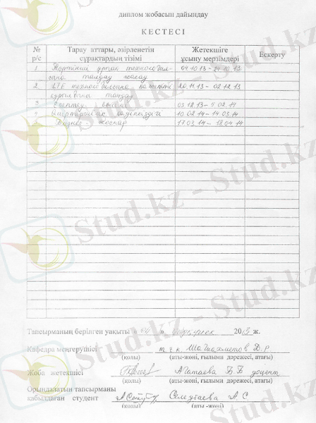 Дипломдық жобада 4G (LTE) технологиясының негізінде заманға сай