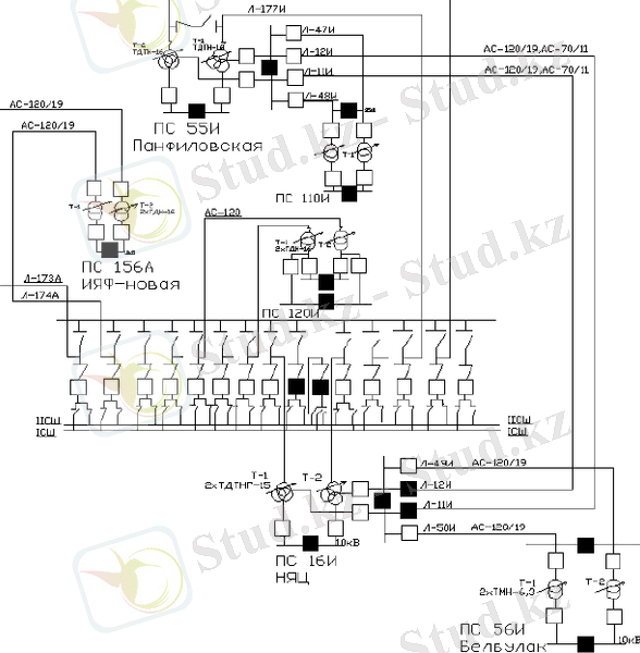Қосалқы станциядағы ұяшықтардың саны - 12. Жіберуші фидерлер саны - 9.