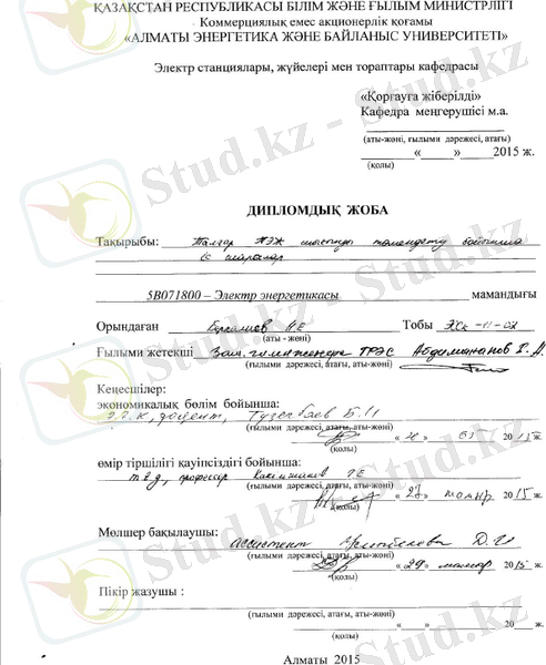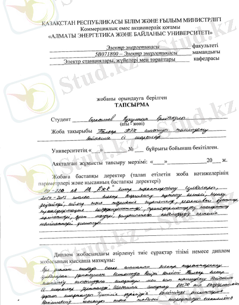 Бұл диплом жұмысымда «Талғар ТЭЖ» электр энергиясының шығынын