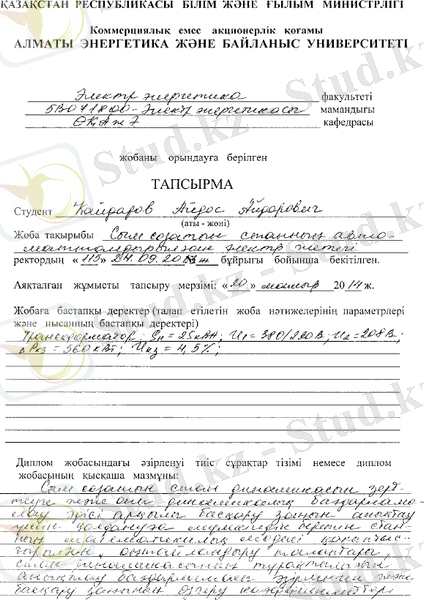 Дипломдық жұмыс «Сым созатын станының автоматтандырылған электр