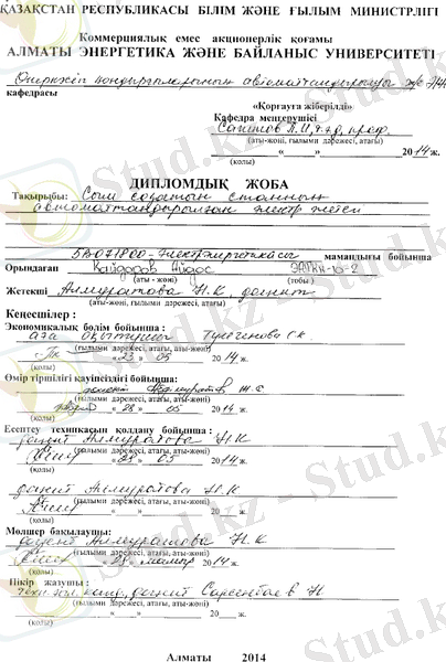 автоматтандырылған электр жетегінің экономикалық тиімділігі қарастырылған.