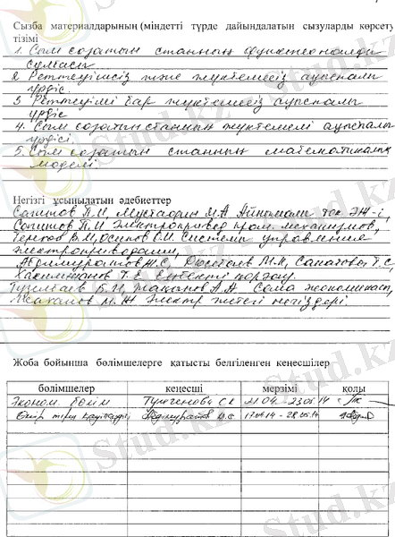 жетегінің басқару жүйесін жетілдіру» тақырыбына арналған. Оған келесі